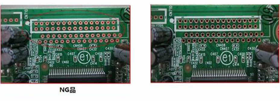 待程序完成后方可進(jìn)行補(bǔ)鉆,生產(chǎn)人員進(jìn)行標(biāo)識(shí)處理后便進(jìn)行二次補(bǔ)鉆,鉆孔操作員對(duì)板進(jìn)行補(bǔ)鉆過程中人為操作錯(cuò)誤,拿錯(cuò)鉆頭導(dǎo)致補(bǔ)鉆后的孔徑偏小不良。